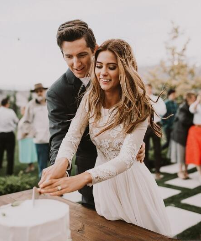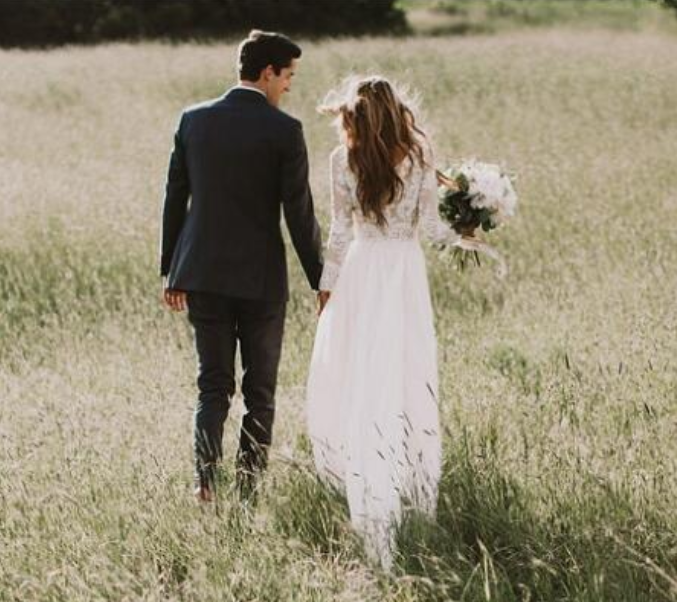 Cheap Boho Country Wedding Dresses Long Sleeves A Line Jewel Floor Length Bridal Gowns