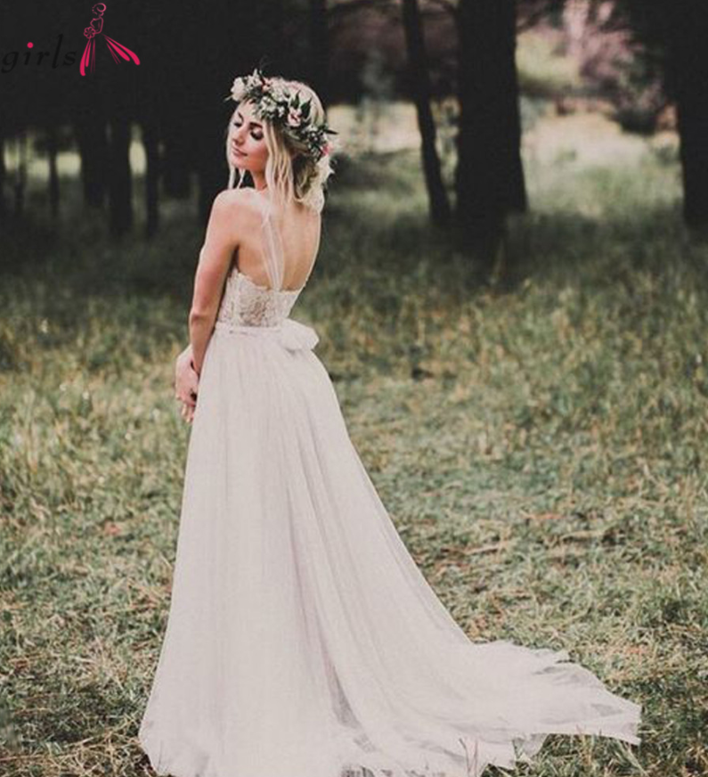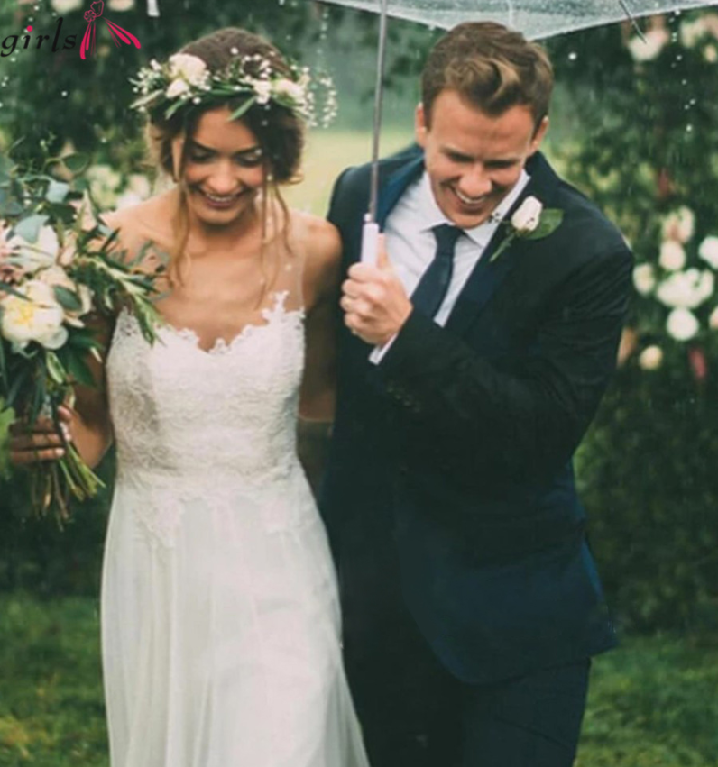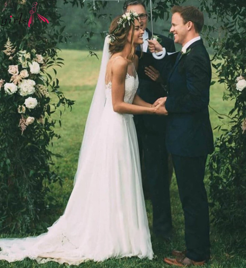 Boho Appliques Illusion sweetheart Elegant backless white Wedding dress