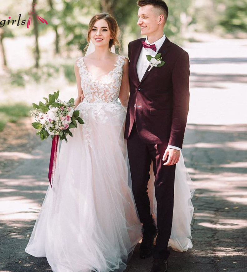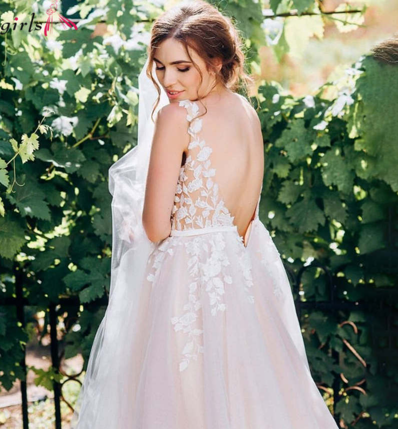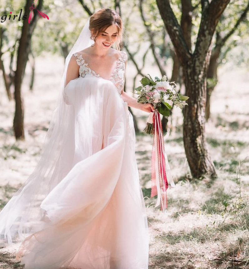 Boho Wedding Dress Embroidery V-Neck Sleeveless Beach Wedding Dresses Plus Size Bridal Gowns