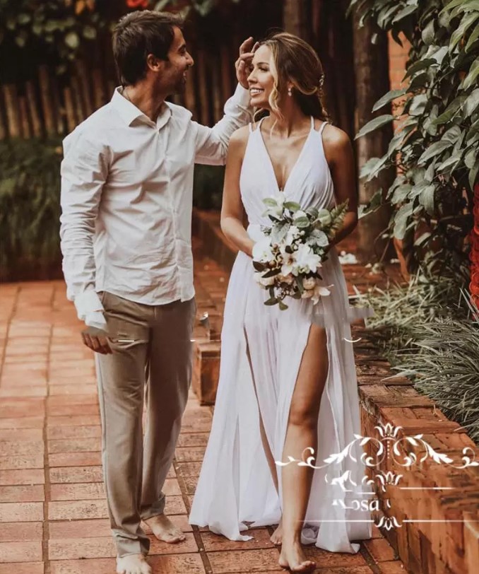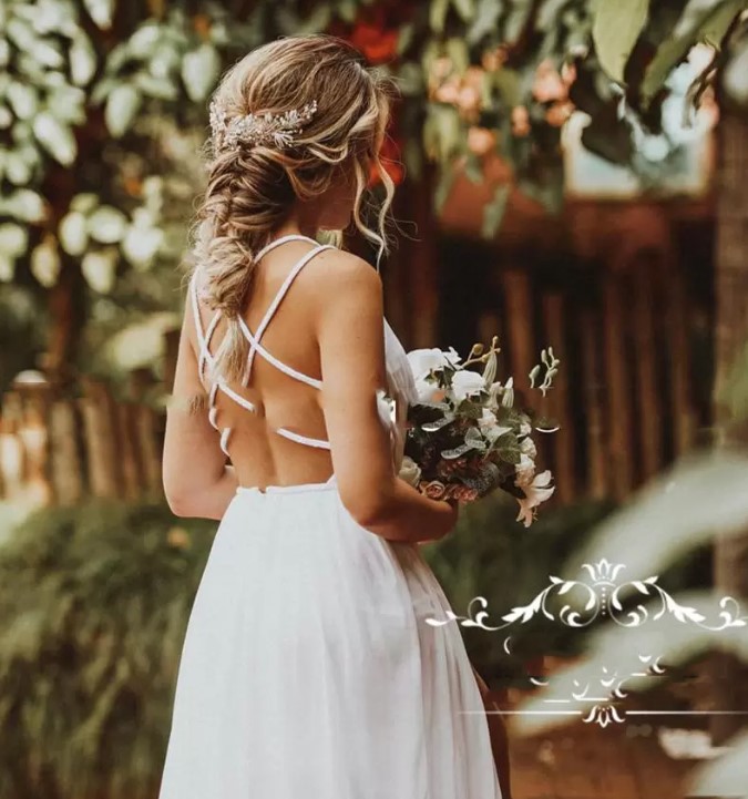 Simple a Line Beach wedding Dresse With Back Criss Cross