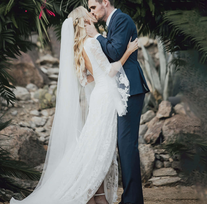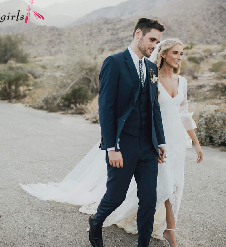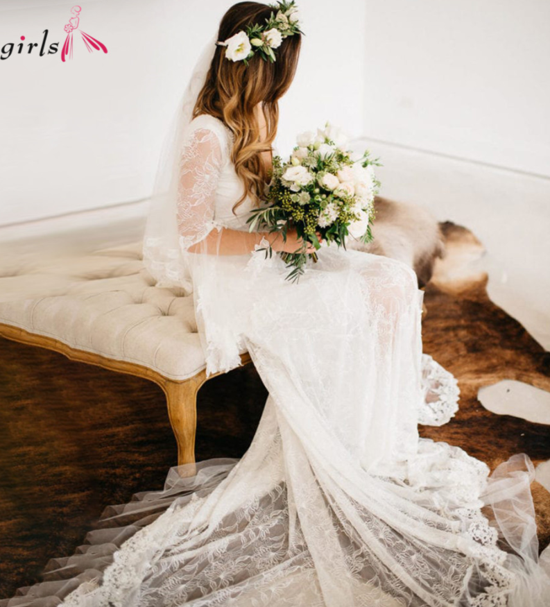 Sexy Backless Boho Wedding Dress V Neck Flare Sleeve Side Slit Beach Wedding Dresses
