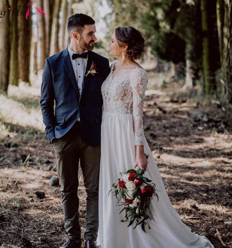 Sexy Illusion Wedding Dress Plus Size Appliques Backless Lace Wedding Gown Scoop Long Sleeves Bridal Dress