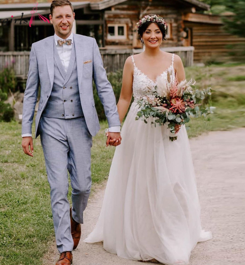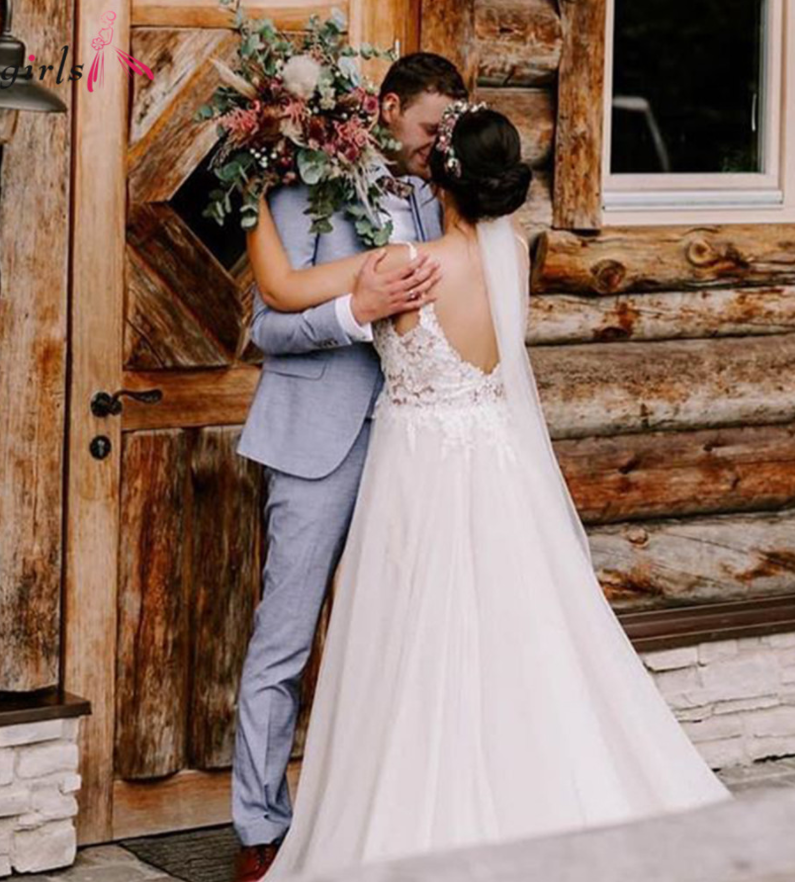 Simple V Neck Wedding Dress Plus Size Spaghetti Strap Backless Sexy Bride Dress