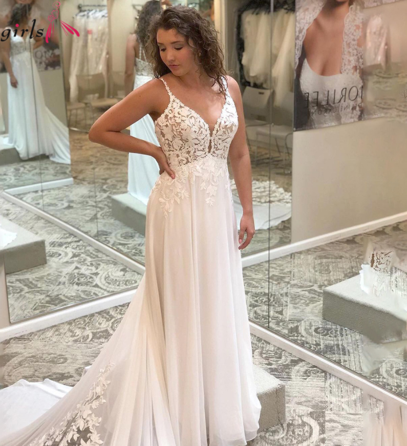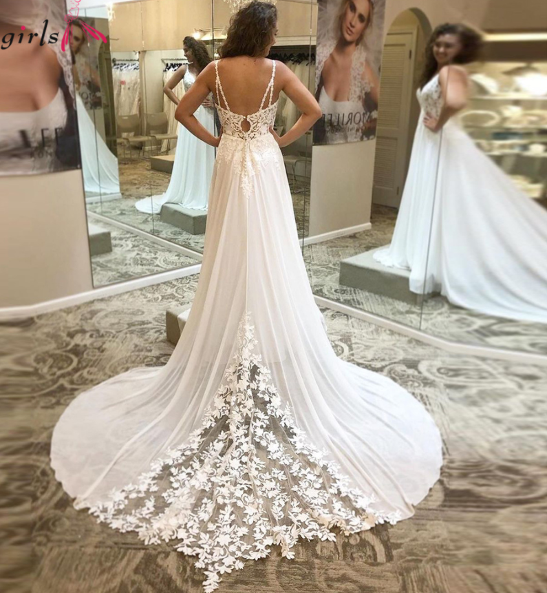 Spaghetti Straps Wedding Dress Lace Ivory Celebrity Dresses Backless Bridal Gown V Neck Wedding Gown