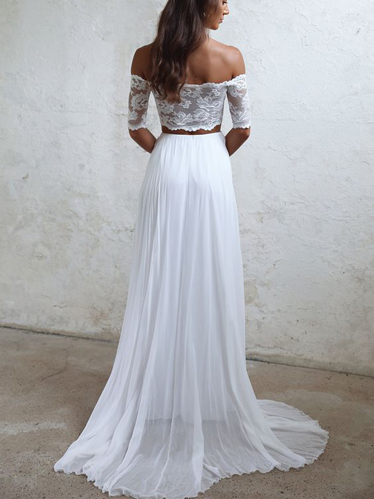 A Line Two Piece Off the Shoulder Beach Wedding Dress