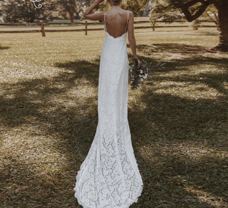 Lace Boho Wedding Dresses for Women Spaghetti Straps Backless Bohemian Bride Dress