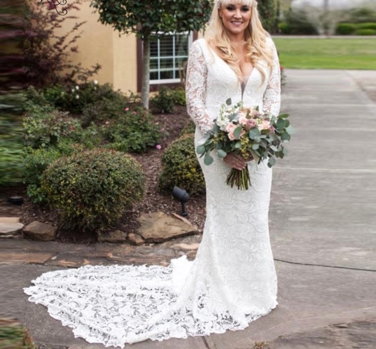 Lace Wedding Dresses Mermaid Bridal Dress Plus Size Long Sleeve V-Neck Backless Boho Bride Gowns